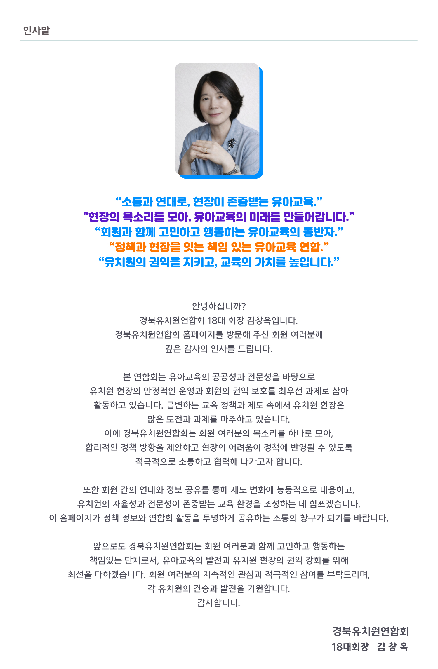 상호 : 경북유치원연합회    대표자 : 임명희   개인정보보호책임자: 임명희   고유번호증 : 506-80-01913